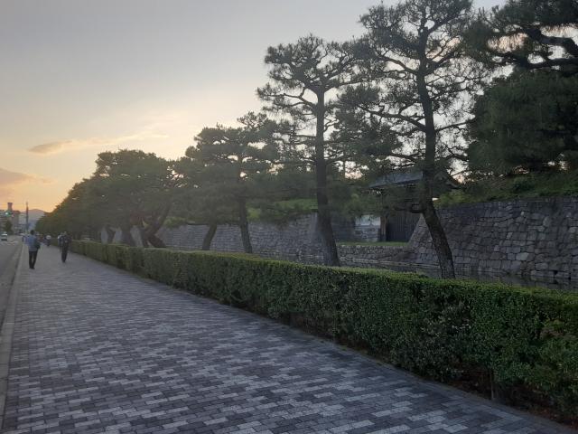 二条城一周を走ったのだが、西向きの時は夕日がまぶしくて仕方なかった。