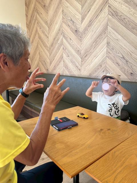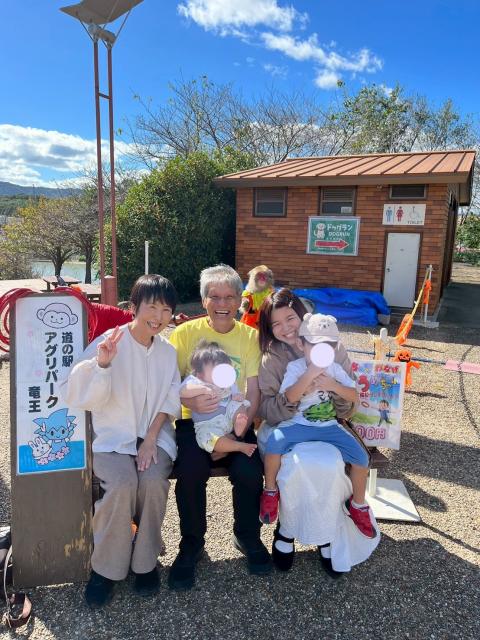 「お孫さんと一緒の写真も撮っていってください」と言ってくださったので、そのお言葉に甘えてうちの3人も。