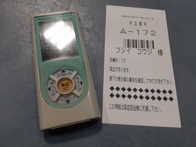 それでも9時には採血終了。診察は10時半からなので、データが間に合わないということはない。