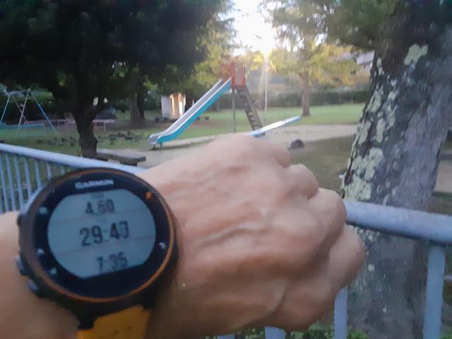 今日はいつもの「短いのを速く」ではなく、「できるだけ休まず長く走る」を心がけて走ることにした。1時間続けましょうかねえ。