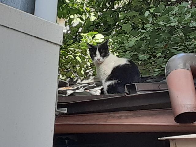 瓦屋根のところばかり見ていたのだが、下で動くものが。