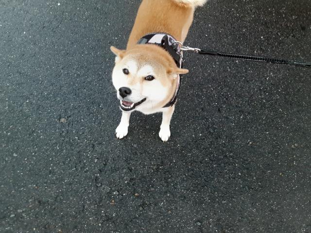 午後4時半、走りに行こうと玄関を出ると、ドンピシャゆずちゃん。
