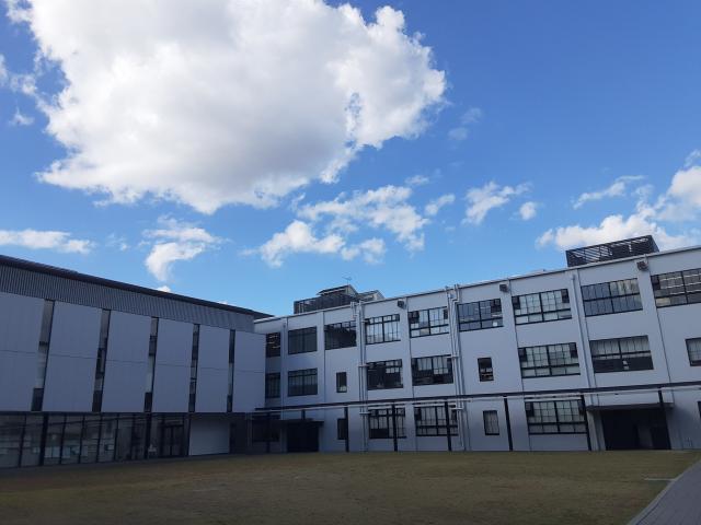 事務局の方お二人が正門前に仁王立ち。大学見学の高校生を待っておられたようだ。