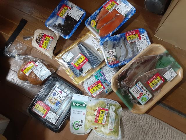 ますみさんが粘って、安くなっている食品をたくさん買ってきてくれた。ありがとうございます。苦労かけるなあ・・・。