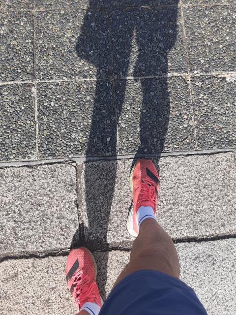 そのため、ウォーミングアップは1kmだけ。5分半くらいなら痛みがひどくはならないようなので、上りは5分半ペース、下りは5分15秒ペースで走りたい。