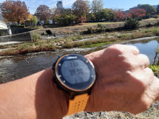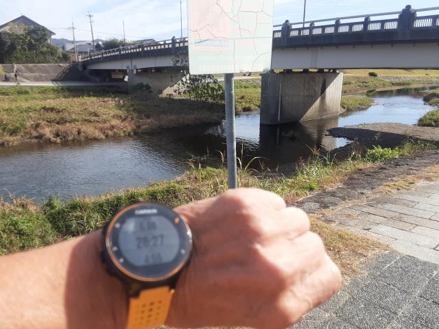 御薗橋までの2.53km、13分32秒。5分20秒ペース。