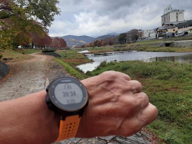 御薗橋折り返し7.43km、39分34秒(13分37秒)。