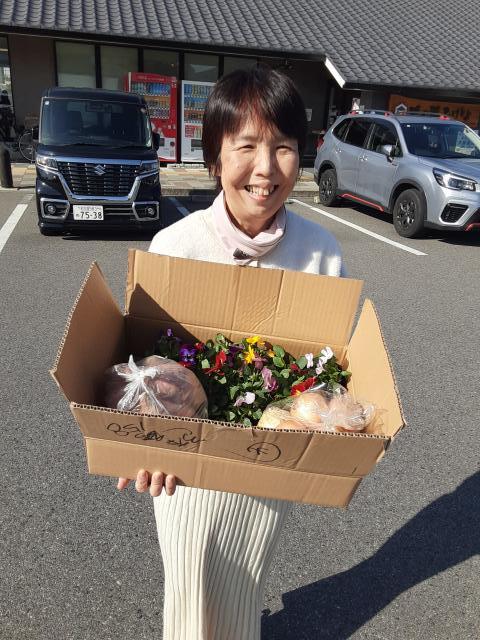 当日も使えるその券で、サツマイモと玉ねぎとお花いっぱいをゲット。