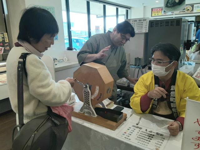 そこではちょうど今日の9時から3時限定で、1000円ごとに1回抽選できる大抽選会をやっておられた。5kgのお米と野菜を少し買ったら5000円を超えて、抽選5回。