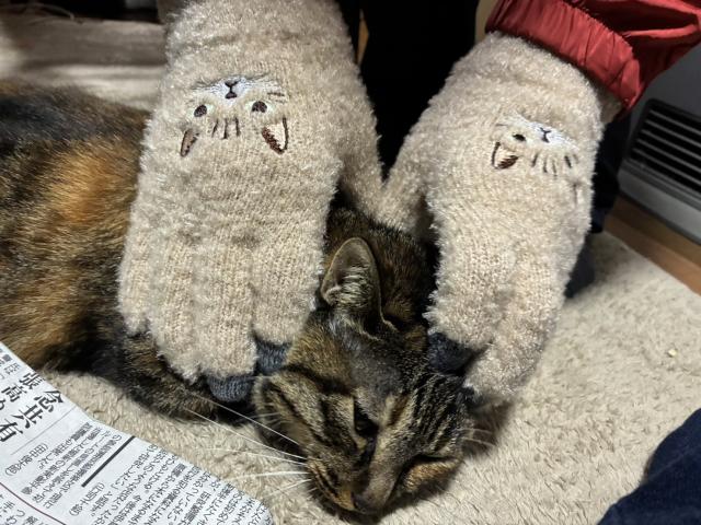 みーちゃんも、なでてもらって気持ちいいらしい。