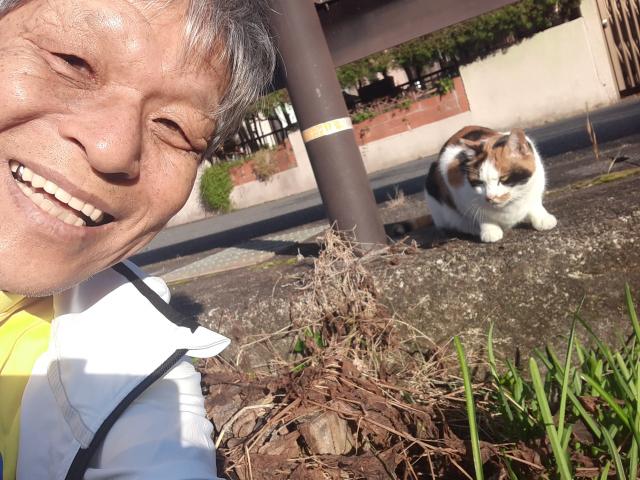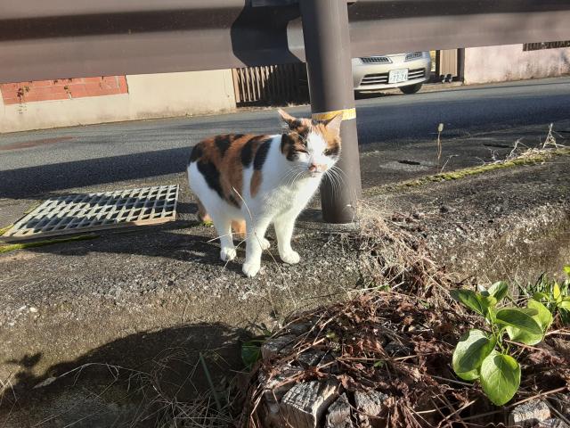 午後3時前、「まずは町内1周」と家を出るといきなり若ミケちゃん。