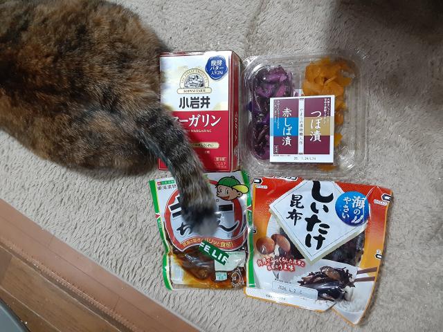 マーガリンと、毎朝のお茶漬けで食べるお漬物を3つ買ってUターン。