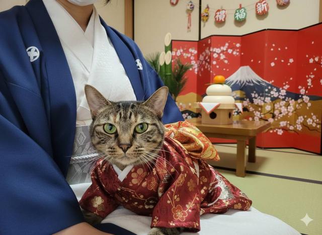 ますみさん作成のAI画像を借用。みーちゃん、ビミョー(美猫)。