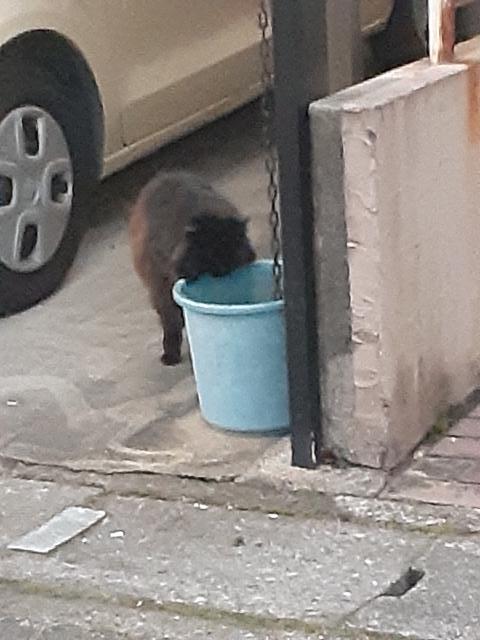 なじみの猫ちゃんが、冷たいバケツの水を飲んでいてかわいそうだった。