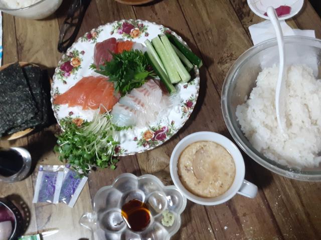 家に帰ると、「手巻き寿司と茶碗蒸し!」