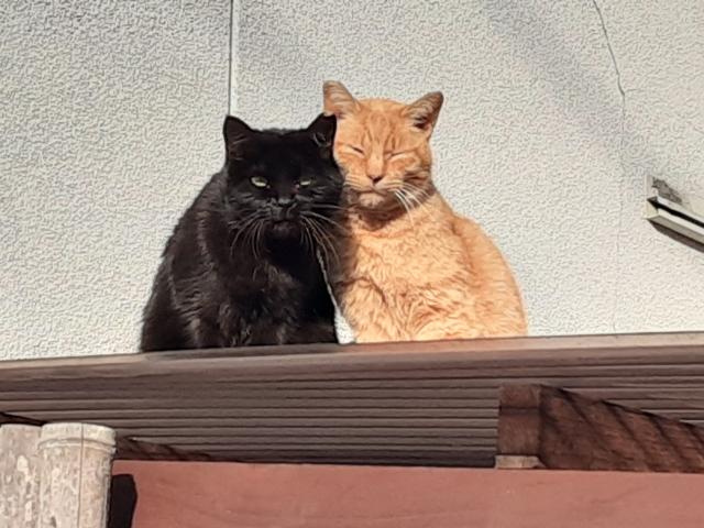 ぴゅーたと黒ちゃん、仲良く日向ぼっこ。