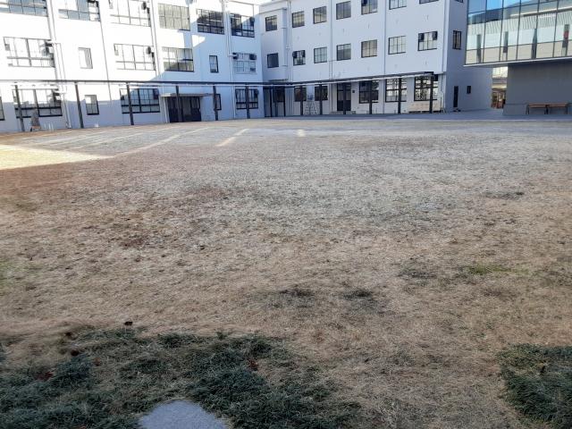 大学のグランドにも、うっすらと雪が積もっていた。