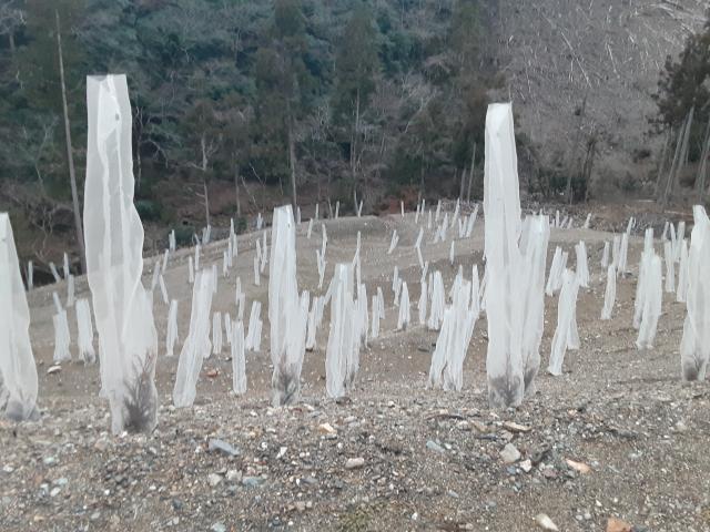 新しく植えられた杉の苗。