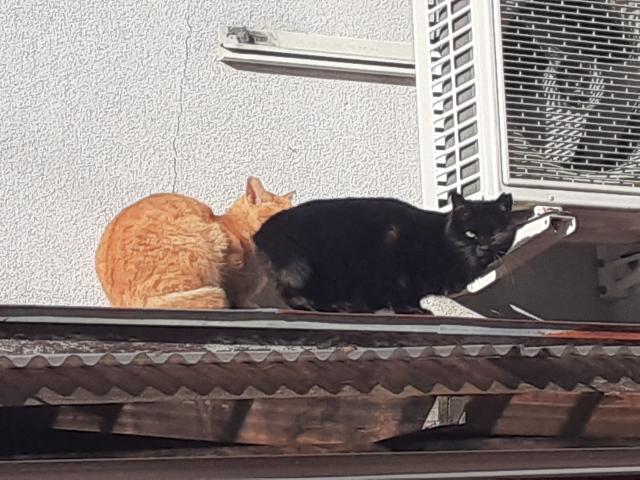 でもラジオ体操が終わった9時10分ごろには日差しがあり、ぴゅーたとくろちゃんがいつもの場所で日向ぼっこ。