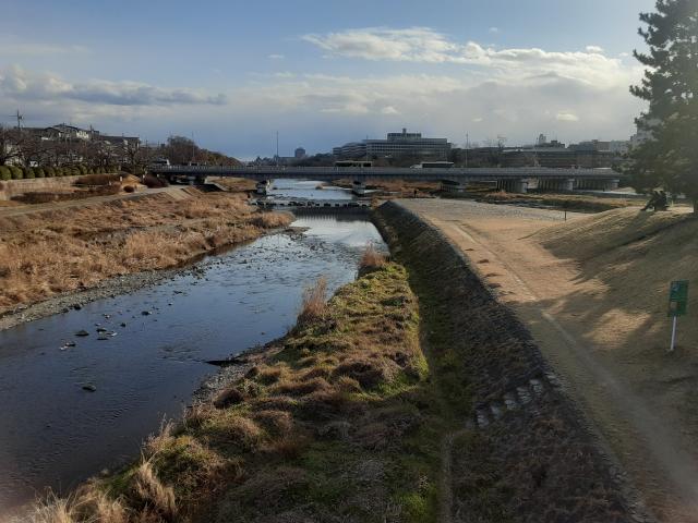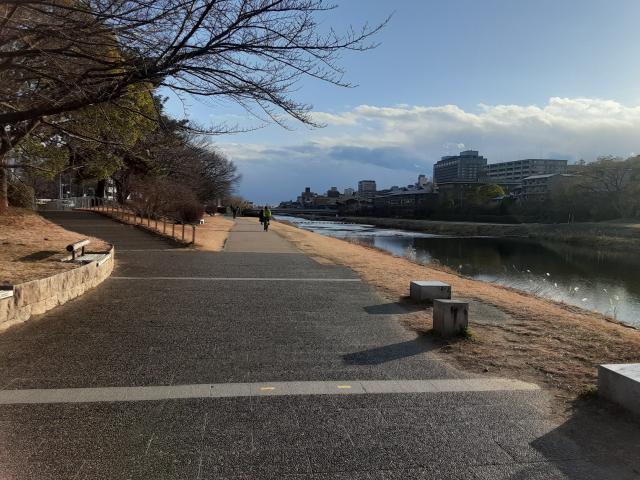 上着を羽織ってきたが、鴨川に出る頃には体も温まり、上着を脱いで腰に巻く。