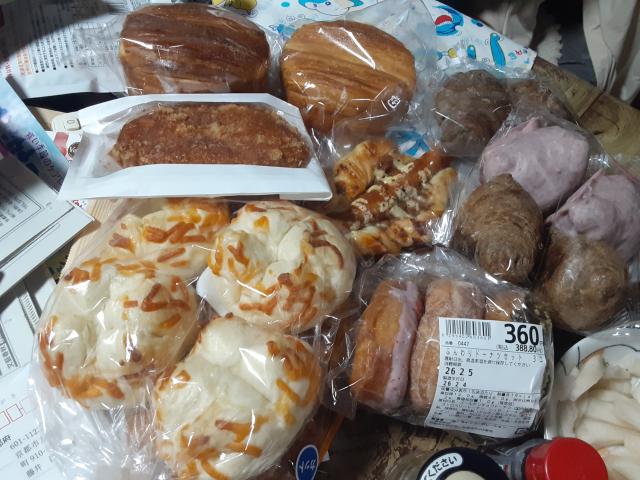 「スーパー・ライフ」で買ったパン。真樹も仕事の帰りに、出町近くの「スーパー・ライフ」でパンを買ってきた。かぶってしもたやん。パンばっかり。