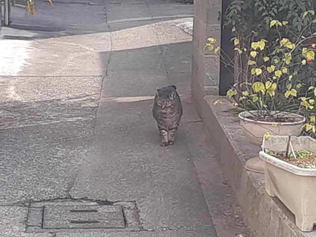 そしたら、家の角からこっちをうかがう猫ちゃんあり。