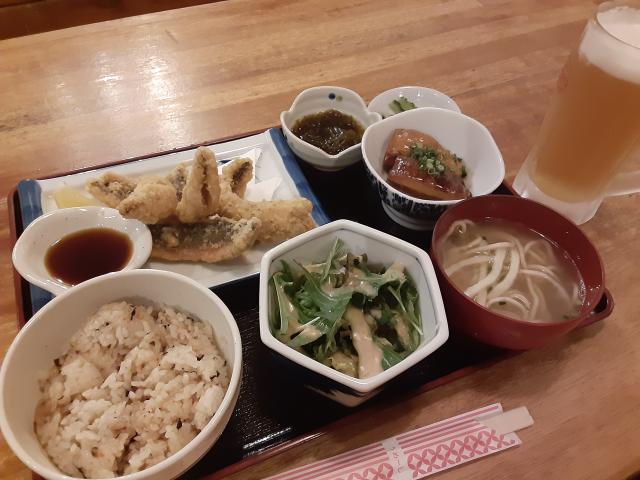 定食に「ソーキ」をプラスで、あとは生ビール。
