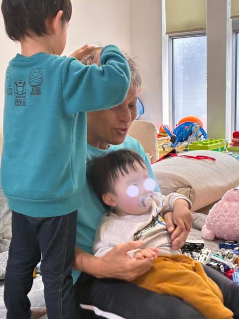 孫1は前から「パオパオちゃん、パオパオちゃん」とよくなついてくれている。ところが孫2は、じいさんがこわいのかなかなか私に近づいてくれない。