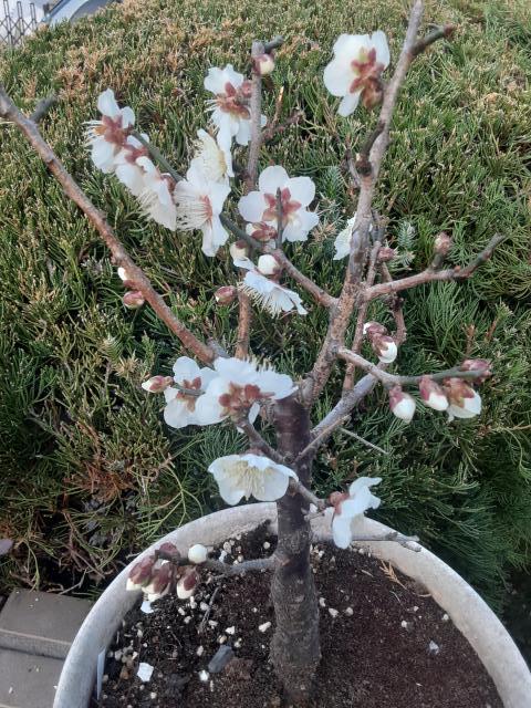 玄関前の梅がきれいに咲いていた。