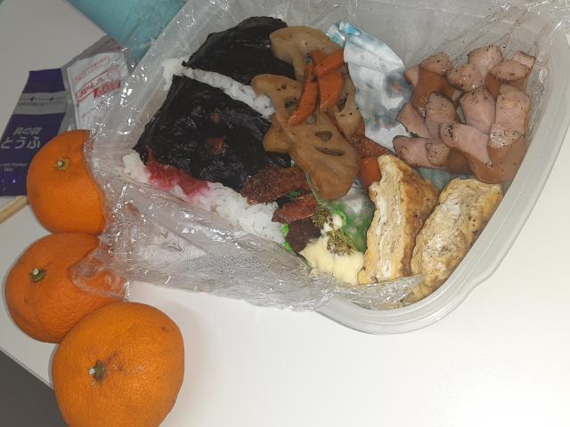 栄養満点の愛妻弁当と、今シーズン最後のみかん。