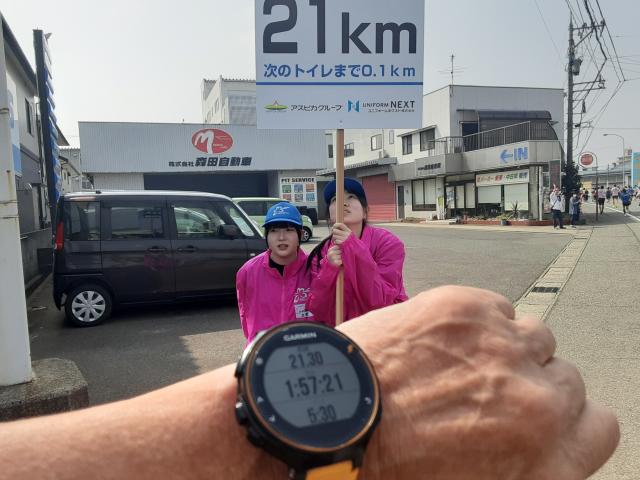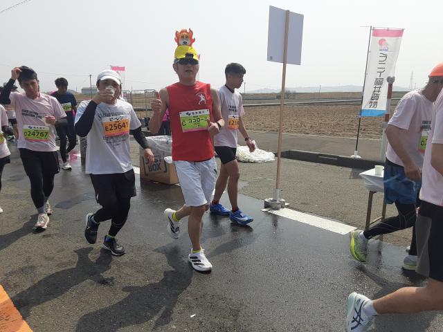 15kmすぎのエイドで「ミニあんタマゴン」を食べたところ、あんが口に残って苦しくなった。その分失速してしまった。この時点で、ウエストバッグに入れてきた「スポーツようかん」は封印決定。