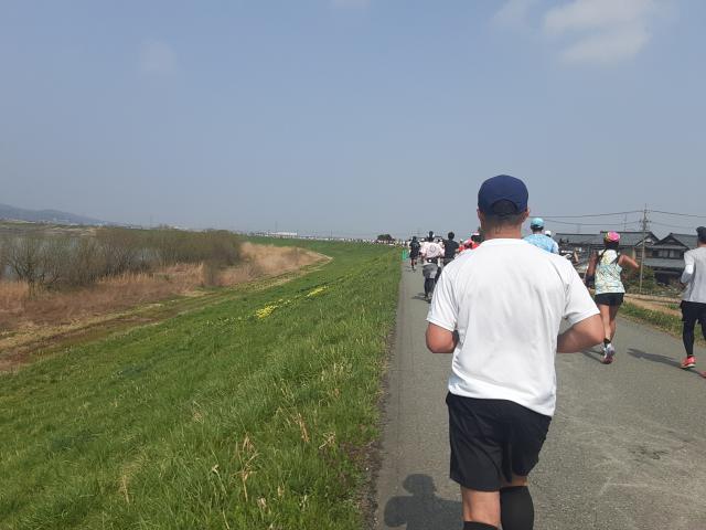 35km手前でザッキーさんらしき女性ランナーに抜かれた。(ゴール後確認すると、ザッキーさんだった。)