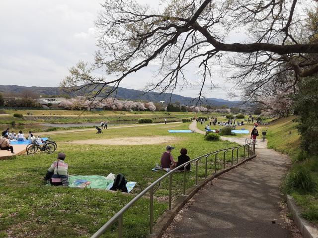 鴨川沿いに下ってくるので、お花見客が多いか注視していた。