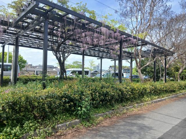 大学のちょっと北、甘春堂の目の前に「藤棚広場」がある。
