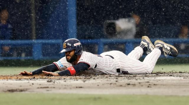 【ヤクルト】雨の松山、サンタナ気迫ヘッスラで泥だらけのホームイン