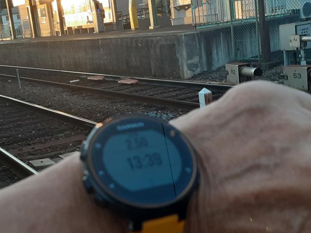 上り1km、5分05秒。下り1km、4分54秒。いい感じ。