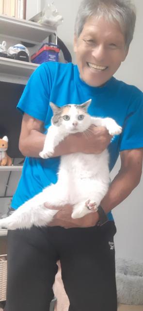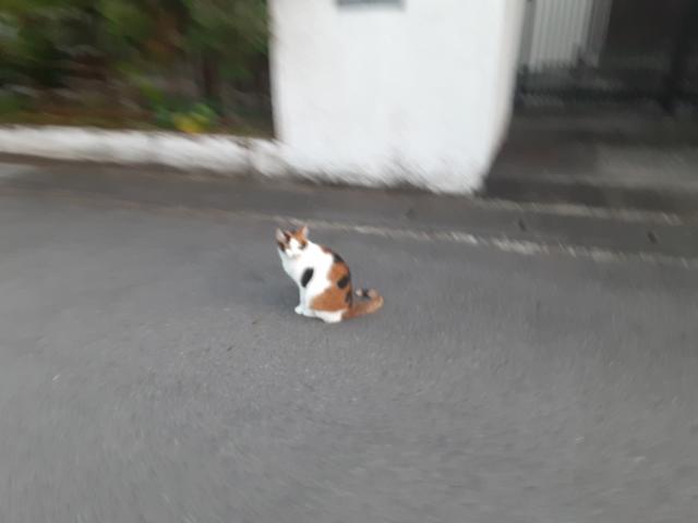 また町内1kmジョグをしていると、以前ひさしちゃんがいた屋根に、新ミケちゃん。どこから来たんやろう。