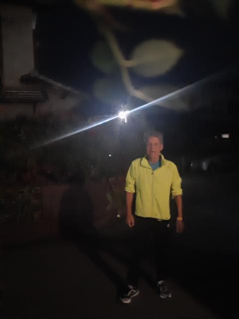 15分ほどただ待っているのは退屈やなあと思っていたら、古くからの走友・井上郁さんが自転車で通られた。井上さんは私と同い年で、トライアスロンによく出られていた。