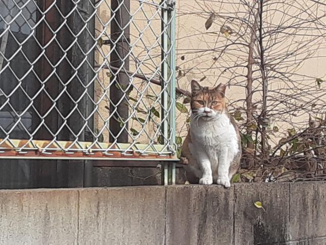 お昼の巡回で、また堂々ミケちゃんに遭遇。