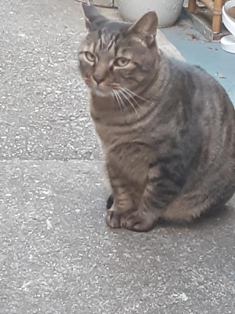 ミケ猫は100%メスらしいが、この堂々ミケちゃん、ほんまにメスかいなと疑ってしまう。
