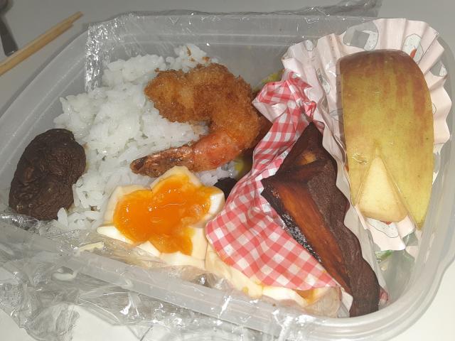 朝早くからエビの処理をして、おいしいエビフライ入りのお弁当にしてくれていた。