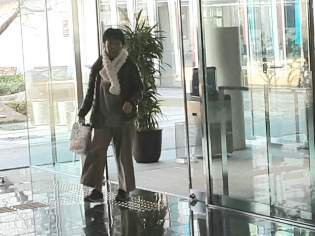 ますみさんは、旅行前に買ったげた毛糸の帽子をやっとかぶってくれた。