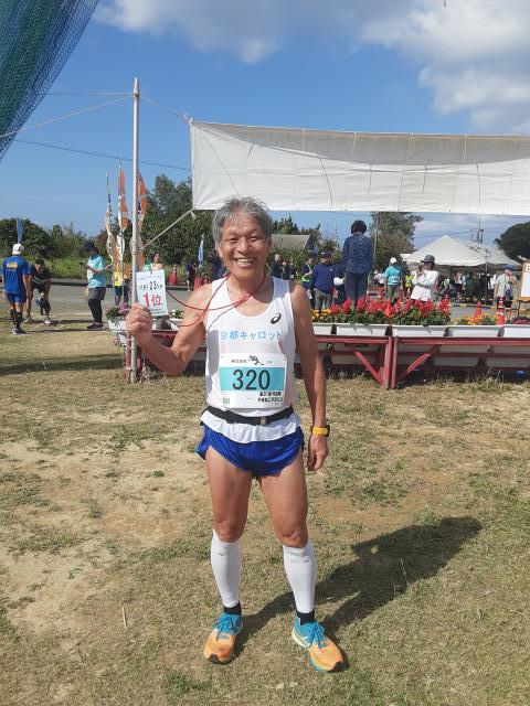 折り返しでは100mほどの差。ナンバーカードを確認すると、まちがいなく70代。なんとかついて行こうとがんばったが、差はどんどん広がりもう見えなくなってしまった。