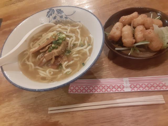 サラダ、もずく、ゴーヤ、沖縄そばも付いていたのだが、全部おいしかったー。