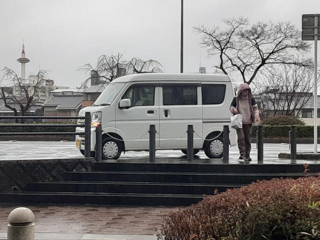 岡崎公園駐車場からJR二条駅まで約4km。ひざを痛めているので、往復歩いて行きましょうねえ。