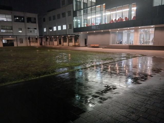 グランドが水たまりになるくらいの大雨。