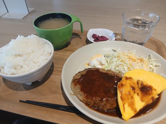 今日のランチは、ハンバーグとオムレツ。