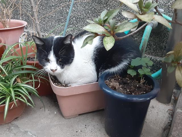 いたー、まさかの植木鉢の上。