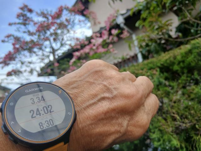 こないだの京都走ろう会例会3.1kmは、5分切りのペースで走れた。ということは、今日の5kmも5分切りペースで行きたい。でも、1km走で5分切れなかったからねえ。