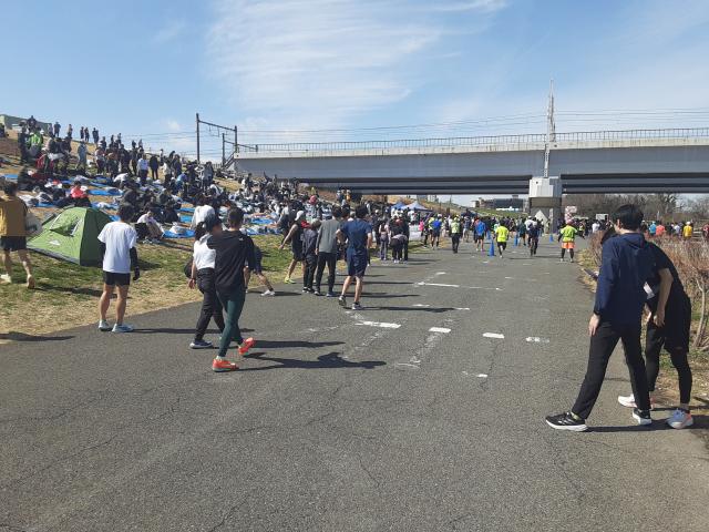 最後の最後、土手から河川敷に下りると風がまし。ちょっとだけ残っていた力を出し切ってゴール。